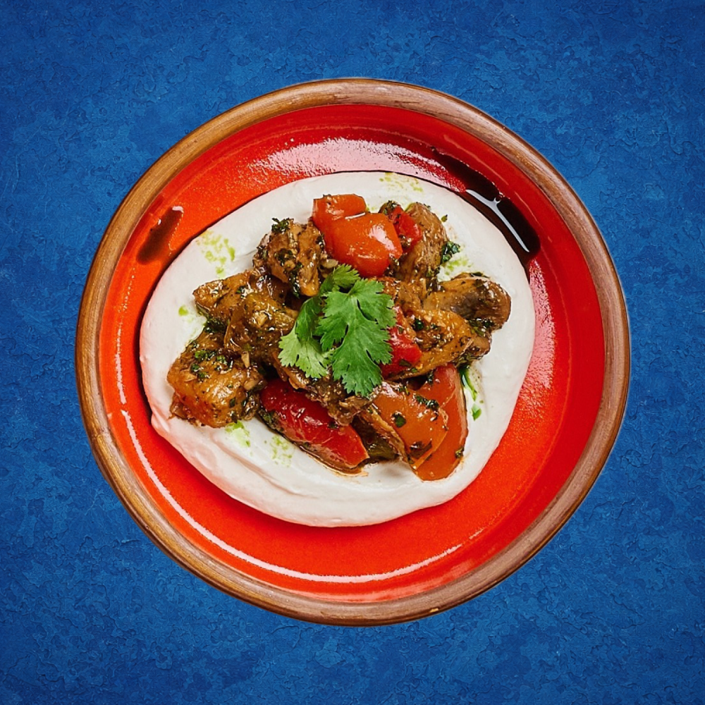 Грибы на кеци с мацони и чесноком