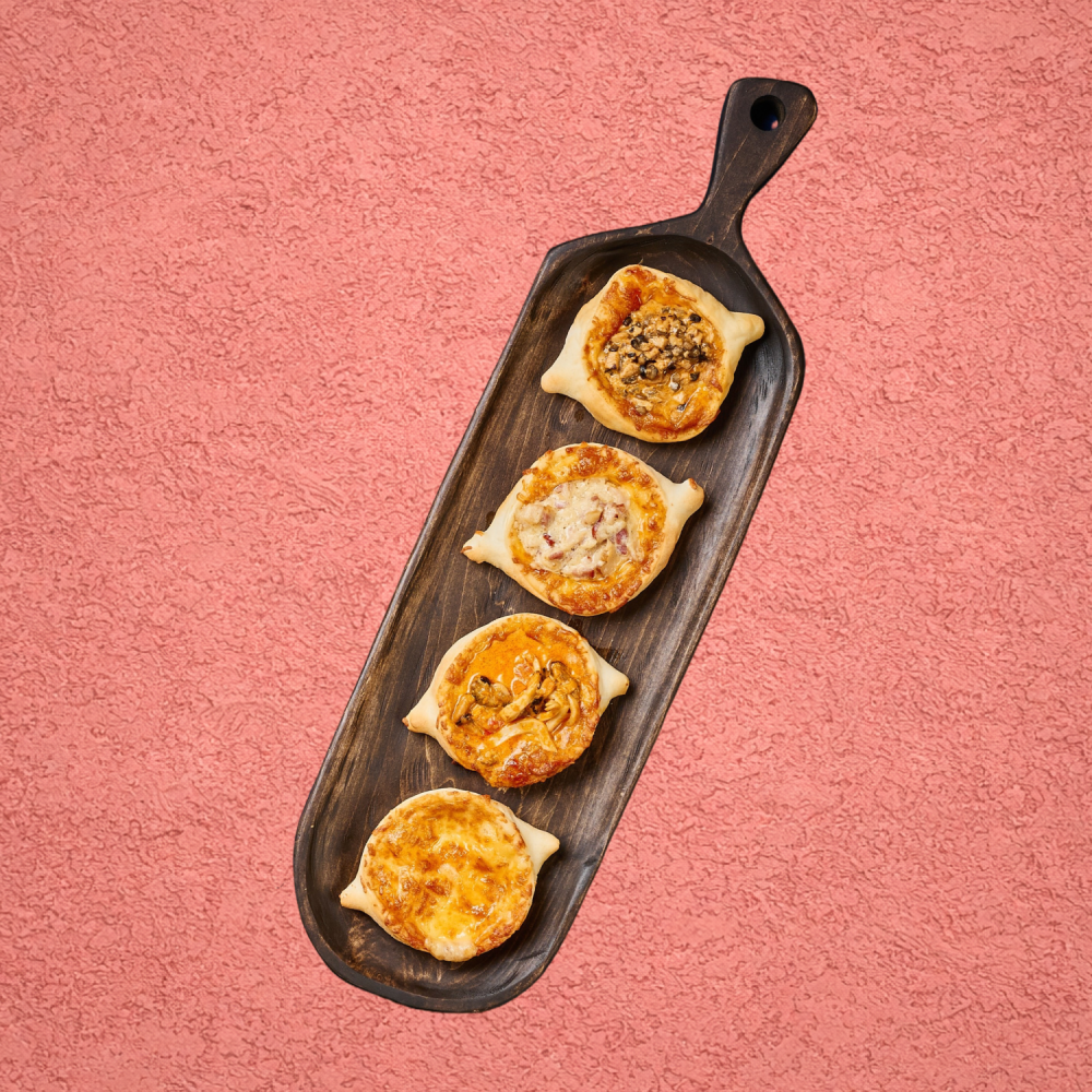 Ассорти из мини хачапури с начинками: Том-ям, карбонара, чкмерули и сыром