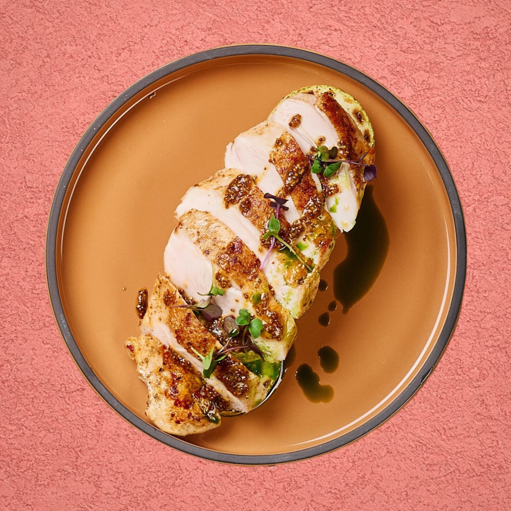 Филе куриной грудки су-вид с цукини и гранатовым соусом